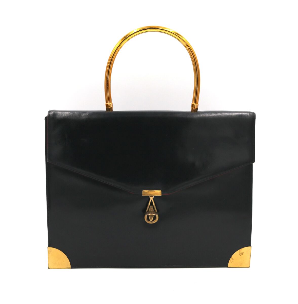 VINTAGE - KORO CREATIONS - LARGE BLACK LEATHER MID CENTURY STRUCTURED HANDBAG - UNIQUE - listed in: