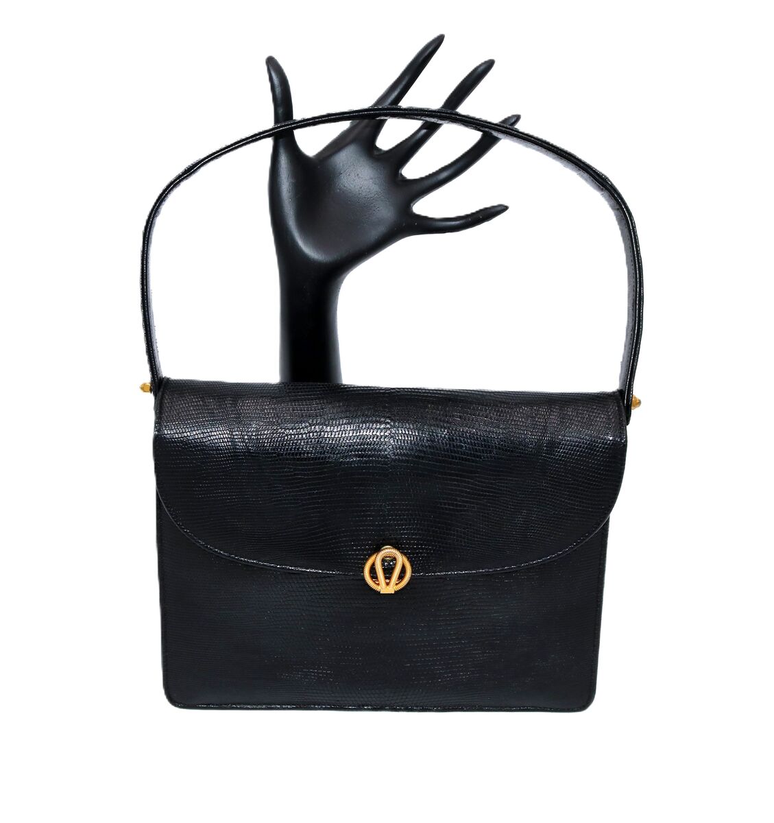 VINTAGE 50S-60S SMALL - BELLESTONE - BLACK - LIZARD - STRUCTURED HANDBAG listed in: