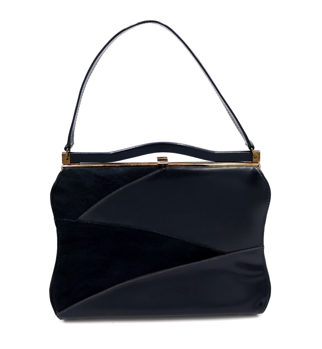 VINTAGE 60S - LIFE STRIDE - DARK BLUE LEATHER SUEDE LIKE HANDBAG - MID CENTURY - listed in: