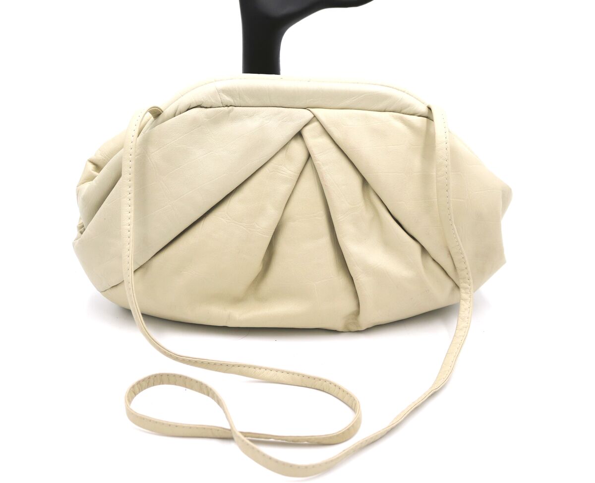 VINTAGE 80S-90S - VIVA - OFF WHITE BONE LEATHER CLUTCH SHOULDER BAG - RETRO - listed in: