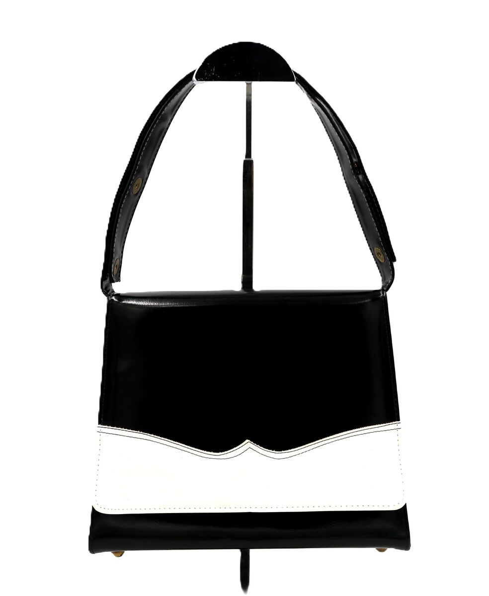 Vintage Mod Black and White - RISQUE - Patent Handbag/Shoulder bag -RETRO -